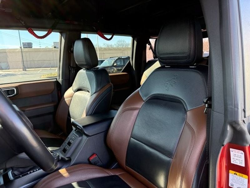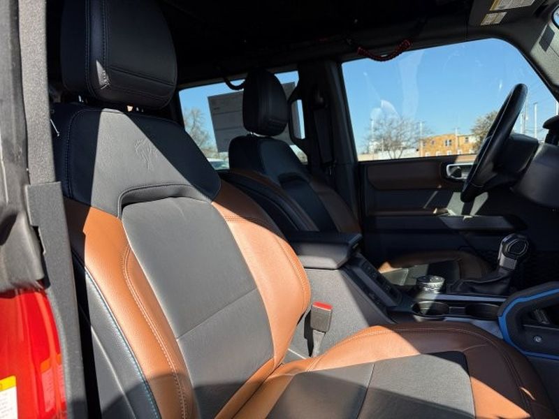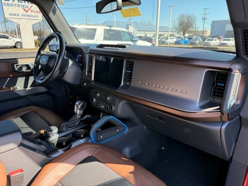 The leather seats in this 1/2 ton suv are a must for buyers looking for comfort, durability, and style. This 1/2 ton suv has a clean CARFAX vehicle history report. Never get into a cold vehicle again with the remote start feature on this Ford Bronco. This 1/2 ton suv features a hands-free Bluetooth phone system. This model's Cross-Traffic Alert: Safeguarding you from unexpected traffic when reversing. The vehicle comes equipped with Android Auto for seamless smartphone integration on the road. Apple CarPlay: Seamless smartphone integration for this Ford Bronco - stay connected and entertained on the go! The state of the art park assist system will guide you easily into any spot. An off-road package is installed on this Ford Bronco so you are ready for your four-wheeling best. This 1/2 ton suv is equipped with the latest generation of XM/Sirius Radio. The vehicle has auto-adjust speed for safe following.Carry lots of cargo while your passengers are comfortable. This 2022 Ford Bronco Advanced has automated speed control that adjusts to maintain a safe following distance, enhancing highway driving convenience. It is equipped with all wheel drive. This Ford Bronco comes equipped with Android Auto for seamless smartphone integration on the road. This vehicle offers Apple CarPlay for seamless connectivity. This Ford Bronco has an automatic transmission. See what's behind you with the back up camera on this 2022 Ford Bronco Advanced. The Ford Bronco has a clean CARFAX vehicle history report. Set the temperature exactly where you are most comfortable in the vehicle. The fan speed and temperature will automatically adjust to maintain your preferred zone climate. This Ford Bronco warns of approaching vehicles with Cross-Traffic Alert. The vehicle features cruise control for long trips. It has a 4 Cyl, 2.3L high output engine. This Ford Bronco is equipped with a gasoline engine. Bluetooth technology is built into the vehicle, keeping your hands on the steering wheel and your focus on the road. This vehicle is pure luxury with a heated steering wheel. The leather seats in it are a must for buyers looking for comfort, durability, and style. With the adjustable lumbar support in this 2022 Ford Bronco Advanced your back will love you. The installed navigation system will keep you on the right path. An off-road package is equipped on the Ford Bronco. The state of the art park assist system will guide you easily into any spot. This unit excites both driver and bystanders with a polished red exterior with racy lines. Start the vehicle from inside with remote start. with XM/Sirus Satellite Radio you are no longer restricted by poor quality local radio stations while driving it. Anywhere on the planet, you will have hundreds of digital stations to choose from.