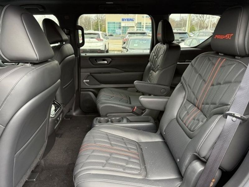 PRO-4X Premium Package with Captain's Chair: In-Car Camera; Intelligent Rear View Mirror (I-RVM); Intelligent Dash Cam; Panoramic Moonroof; Heated 2nd Row Seats; Biometric Cooling; Hands-Free Power Liftgate; Climate Controlled Heated and Ventilated Front Seats. Captain's Chair Seat Package: 2nd Row Outboard Captain's Chairs with Armrests; 2nd Row Center Console with Two Cupholders; EZ Flex Second Row Seating System with One Touch Release. Cross Bars. PRO-4X Carpeted Floor Mats with Captain's Chair. Illuminated Kick Plates. Premium Paint. PRO-4X Mud Guards. **Equipment listed is based on original vehicle build and subject to change. Please confirm the accuracy of the included equipment by calling the dealer prior to purchase.**