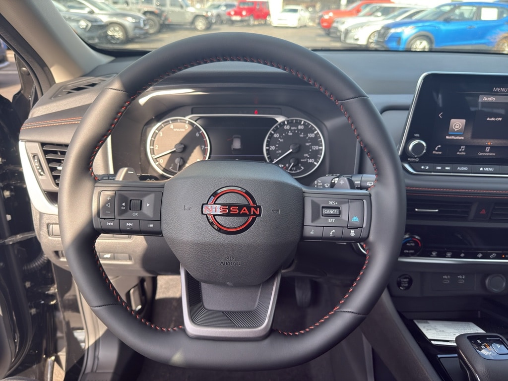 The leather seats in this 2026 Nissan Rogue are a must for buyers looking for comfort, durability, and style. This vehicle offers Android Auto for seamless smartphone integration. See what's behind you with the back up camera on this small suv. Never get into a cold vehicle again with the remote start feature on this model. The state of the art park assist system will guide you easily into any spot. An off-road package is installed on this Nissan Rogue so you are ready for your four-wheeling best. This vehicle keeps you comfortable with Auto Climate. This model features a hands-free Bluetooth phone system. Apple CarPlay: Seamless smartphone integration for it - stay connected and entertained on the go! Load groceries and much more with ease into this small suv thanks to the power liftgate. This model is painted with a sleek and sophisticated black color. Conquer any rainy, snowy, or icy road conditions this winter with the all wheel drive system on the vehicle.
