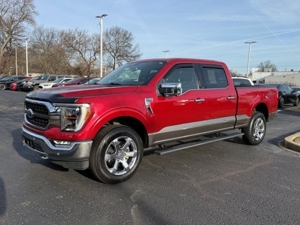 For sale in Louisville KY: 2022 Ford F-150 King Ranch 4WD with the powerful 3.5L V6 gasoline engine â" the best price in the area on a premium, pre-owned pickup. This King Ranch combines rugged capability with refined comfort, featuring luxurious leather seats and a heated steering wheel for cold mornings. The advanced back-up camera and integrated navigation make parking and long trips effortless, while Apple CarPlay keeps your phone connected and your favorite apps within reach. Whether you tow heavy loads or commute daily, the 4WD system and durable V6 deliver confidence on wet roads and rough terrain. The King Ranch trim adds distinctive styling and premium materials throughout the cabin, giving you a truck that performs as good as it looks. With safety-focused tech and convenience features, this Ford F-150 is ideal for families, contractors, and lifestyle drivers who demand versatility and comfort. Conveniently located in Louisville KY, this pre-owned 2022 Ford F-150 King Ranch is competitively priced to sell quickly â" we guarantee the best price for this model in the market. Schedule a test drive today to experience its power, luxury, and tech firsthand. Act now to secure a top-condition truck at an unbeatable value.