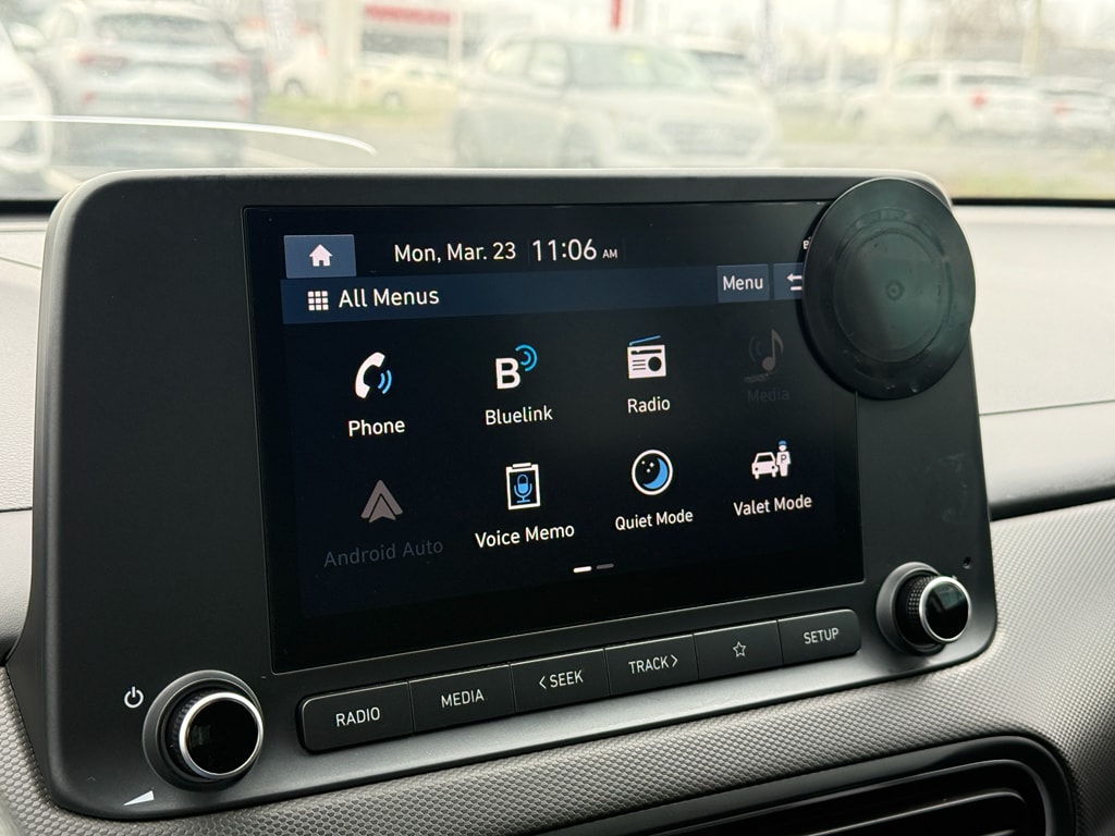 Our dealership has already run the CARFAX report and it is clean. A clean CARFAX is a great asset for resale value in the future. The Hyundai Kona offers Apple CarPlay for seamless connectivity. Start this unit from inside with remote start. Lane Keep Assist in this small suv helps maintain safe driving by gently steering to stay within the lane. Protect this vehicle from unwanted accidents with a cutting edge backup camera system. The Hyundai Kona comes equipped with Android Auto for seamless smartphone integration on the road. Bluetooth technology is built into this vehicle, keeping your hands on the steering wheel and your focus on the road. This Hyundai Kona has a 4 Cyl, 2.0L high output engine. With the keyless entry system on this vehicle you can pop the trunk without dropping your bags from the store. Expand the cargo capabilities of it by using the installed roof rack.