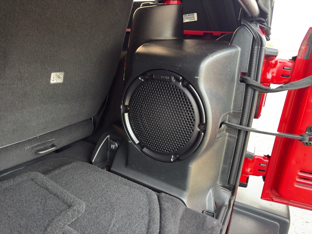Power Convenience Group: Auto Dim Mirror with Reading Lamp; Front 1-Touch Down Power Windows; Power Heated Mirrors; Security Alarm; Power Locks; Remote Keyless Entry. Quick Order Package 23R. Connectivity Group: Vehicle Information Center; Remote USB Port; Uconnect Voice Command with Bluetooth; Tire Pressure Monitoring Display. 4.10 Rear Axle Ratio. Deep Tint Sunscreen Windows. Premium Black Sunrider Soft Top. **Equipment listed is based on original vehicle build and subject to change. Please confirm the accuracy of the included equipment by calling the dealer prior to purchase.**