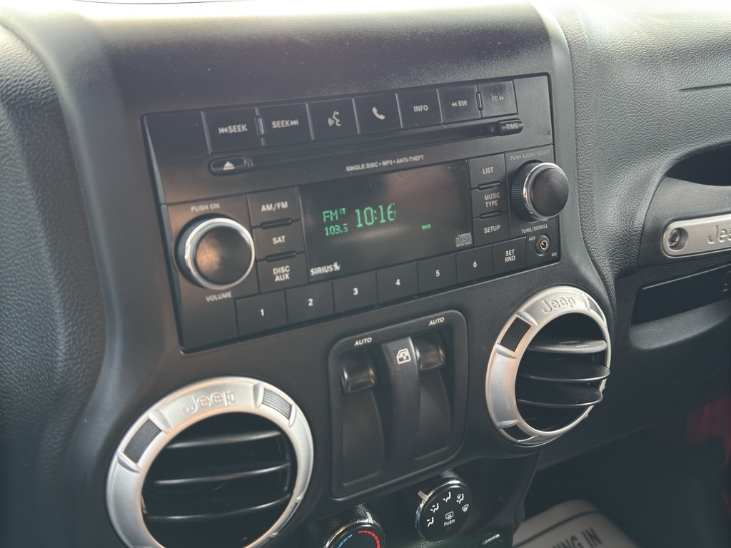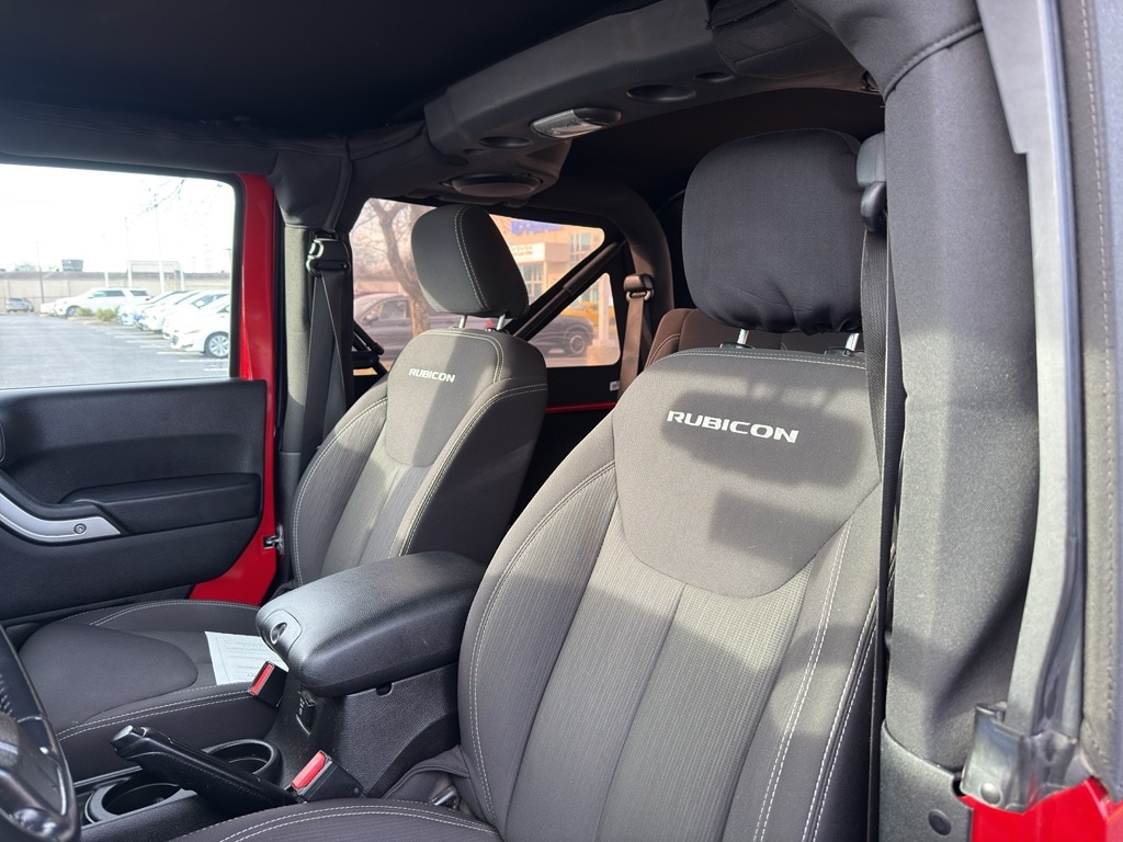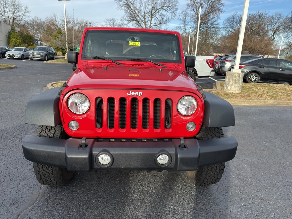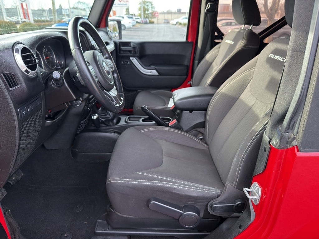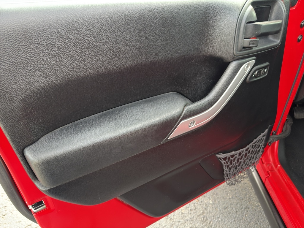 Our dealership has already run the CARFAX report and it is clean. A clean CARFAX is a great asset for resale value in the future. Bluetooth technology is built into this vehicle, keeping your hands on the steering wheel and your focus on the road. An off-road package is installed on it so you are ready for your four-wheeling best. This unit has a V6, 3.6L high output engine. Quickly unlock this model with keyless entry. Maintaining a stable interior temperature in it is easy with the climate control system. When you encounter slick or muddy roads, you can engage the four wheel drive on this model and drive with confidence. This vehicle excites both driver and bystanders with a polished red exterior with racy lines. The vehicle features heated side mirrors keeping the ice off and your vision spot-on. The fog lights cut through the weather so you can see what's ahead.When you encounter slick or muddy roads, you can engage the four wheel drive on this unit and drive with confidence. Anti-lock brakes will help you stop in an emergency. This unit has a clean CARFAX vehicle history report. Maintaining a stable interior temperature in this model is easy with the climate control system. The vehicle features cruise control for long trips. The Electronic Stability Control will keep you on your intended path. This model has a V6, 3.6L high output engine. This model has fog lights for all weather conditions. The vehicle is equipped with a gasoline engine. The Jeep Wrangler features a hands-free Bluetooth phone system. This mid-size suv features heated side mirrors keeping the ice off and your vision spot-on. With the keyless entry system on this vehicle you can pop the trunk without dropping your bags from the store. This unit comes with a manual transmission. The spacious cabin accommodates your family and friends in comfort. Take it to the mountains or the beach. this Jeep Wrangler can handle it all. An off-road package is equipped on this Jeep Wrangler. The Jeep Wrangler excites both driver and bystanders with a polished red exterior with racy lines.