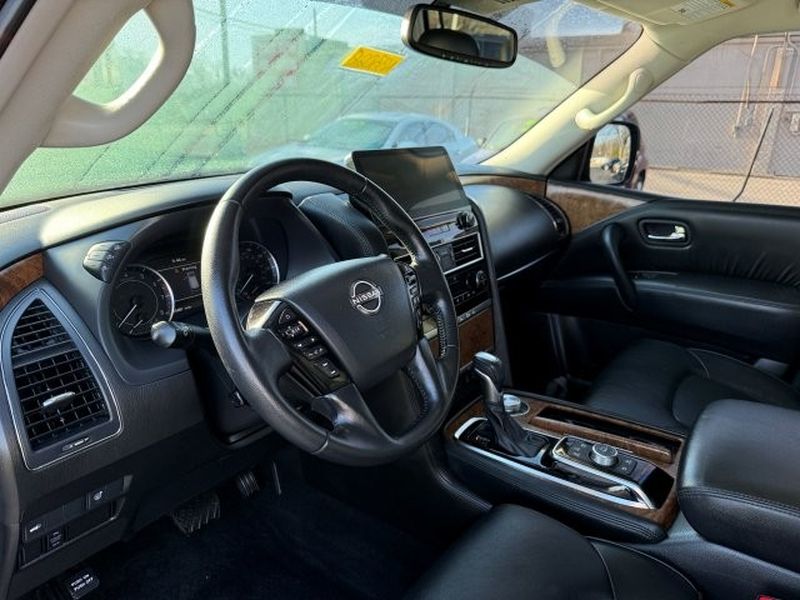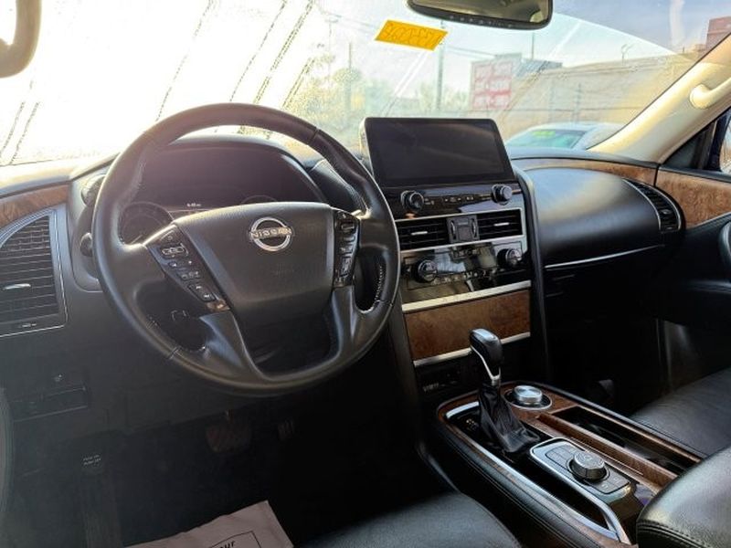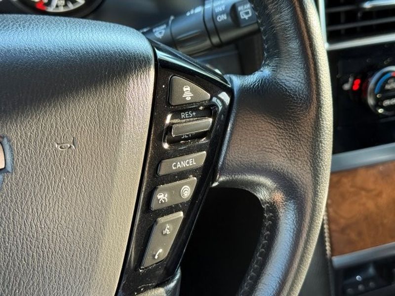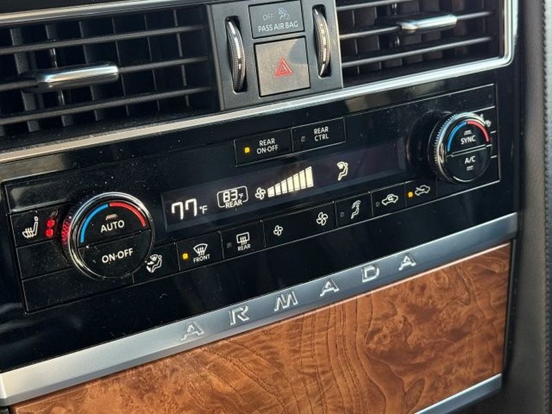 This 2022 Nissan Armada is equipped with the latest generation of XM/Sirius Radio. Bluetooth technology is built into the Nissan Armada, keeping your hands on the steering wheel and your focus on the road. The Nissan Armada comes equipped with Android Auto for seamless smartphone integration on the road. Apple CarPlay: Seamless smartphone integration for this unit - stay connected and entertained on the go! See what's behind you with the back up camera on the vehicle. The installed navigation system will keep you on the right path. The leather seats in this 2022 Nissan Armada are a must for buyers looking for comfort, durability, and style. Engulf yourself with the crystal clear sound of a BOSE sound system in this 1/2 ton suv. This vehicle is a certified CARFAX 1-owner. Never get into a cold vehicle again with the remote start feature on this unit. This unit's Forward Collision Warning system alerts the driver to potential front-end collisions, enhancing safety.Enough room to carry all your cargo, passengers and equipment on a long road trip. Offering a ride height that is above most other vehicles, this 1/2 ton suv has great visibility on the road. When you encounter slick or muddy roads, you can engage the four wheel drive on this model and drive with confidence. This 2022 Nissan Armada offers Android Auto for seamless smartphone integration. This unit offers Apple CarPlay for seamless connectivity. The high efficiency automatic transmission shifts smoothly and allows you to relax while driving. Engulf yourself with the crystal clear sound of a BOSE sound system in this model. Protect it from unwanted accidents with a cutting edge backup camera system. This 2022 Nissan Armada has an elegant black exterior finish. Good News! This certified CARFAX 1-owner vehicle has only had one owner before you. Set the temperature exactly where you are most comfortable in the vehicle. The fan speed and temperature will automatically adjust to maintain your preferred zone climate. Easily set your speed in this vehicle with a state of the art cruise control system. Increase or decrease velocity with the touch of a button. The Electronic Stability Control will keep you on your intended path. This vehicle has a V8, 5.6L high output engine. This 1/2 ton suv's Forward Collision Warning feature alerts drivers to potential front-end collisions. This model is equipped with a gasoline engine. This 1/2 ton suv features a hands-free Bluetooth phone system. The leather seats in this Nissan Armada are a must for buyers looking for comfort, durability, and style. Help alleviate lower back pain with the driver seat lumbar support in this 2022 Nissan Armada . The installed navigation system will keep you on the right path. Enjoy the convenience of the power liftgate on this unit. Start this 1/2 ton suv from inside with remote start. A trailer braking system is already installed on this model. The vehicle is equipped with the latest generation of XM/Sirius Radio.
