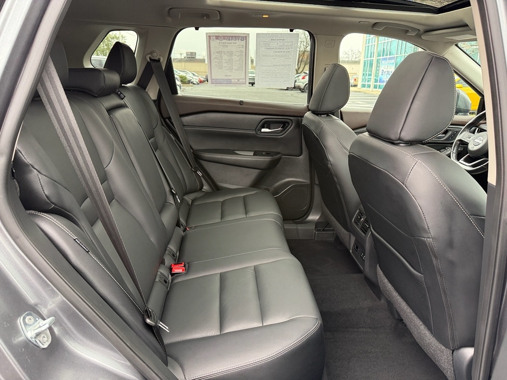 The installed navigation system will keep you on the right path. This model offers Android Auto for seamless smartphone integration. Keep your hands warm all winter with a heated steering wheel in it . The leather seats in it are a must for buyers looking for comfort, durability, and style. Protect this unit from unwanted accidents with a cutting edge backup camera system. This 2023 Nissan Rogue offers Apple CarPlay for seamless connectivity. Never get into a cold vehicle again with the remote start feature on this unit. The Nissan Rogue features a high end BOSE stereo system. This Nissan Rogue features a hands-free Bluetooth phone system. This small suv will allow to see the road and so much more with the HID headlights. The vehicle projects refinement with a racy metallic gray exterior. The vehicle is equipped with all wheel drive. Set the temperature exactly where you are most comfortable in it. The fan speed and temperature will automatically adjust to maintain your preferred zone climate.Conquer any rainy, snowy, or icy road conditions this winter with the all wheel drive system on this model. It comes equipped with Android Auto for seamless smartphone integration on the road. Apple CarPlay: Seamless smartphone integration for this vehicle - stay connected and entertained on the go! This vehicle has an automatic transmission. Engulf yourself with the crystal clear sound of a BOSE sound system in this small suv. Protect this small suv from unwanted accidents with a cutting edge backup camera system. This vehicle is a certified CARFAX 1-owner. Our dealership has already run the CARFAX report and it is clean. A clean CARFAX is a great asset for resale value in the future. Set the temperature exactly where you are most comfortable in it. The fan speed and temperature will automatically adjust to maintain your preferred zone climate. Easily set your speed in this vehicle with a state of the art cruise control system. Increase or decrease velocity with the touch of a button. The Electronic Stability Control will keep you on your intended path. The Nissan Rogue has a 3 Cyl, 1.5L high output engine. Enjoy the tried and true gasoline engine in this unit. It projects refinement with a racy metallic gray exterior. The HID headlamps on the Nissan Rogue light your way like never before. Bluetooth technology is built into this unit, keeping your hands on the steering wheel and your focus on the road. Keep your hands warm all winter with a heated steering wheel in this vehicle . The leather seats in the vehicle are a must for buyers looking for comfort, durability, and style. Help alleviate lower back pain with the driver seat lumbar support in this unit. You'll never again be lost in a crowded city or a country region with the navigation system on this model. Enjoy the convenience of the power liftgate on this Nissan Rogue. Never get into a cold vehicle again with the remote start feature on the Nissan Rogue. This small SUV will zip through traffic.
